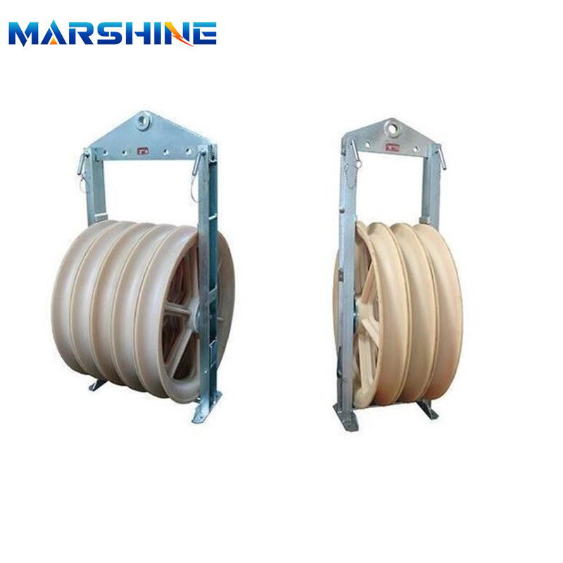 Bloco de poleia de condutor de grande diâmetro, também chamado bloco de poleia de condutor de nylon, pode proteger o cabo e o condutor de fricção quando estão sendo colocados. Eles podem economizar tempo e esforço.